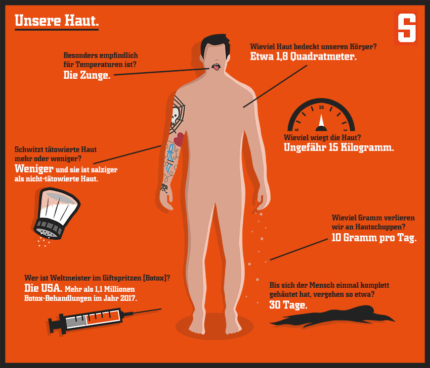 Wie viel Haut verlieren wir, Tag für Tag? Wo ist die Haut am dünnsten? Und wer ist Botox-Weltmeister? Ein Quiz im Film.